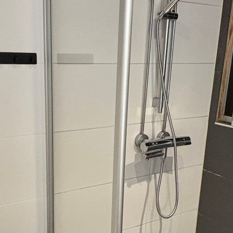 Suihkuseinä on uusi ja käyttämätön, mutta siinä on kuljetusvaurio (näkyy kuvissa)