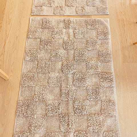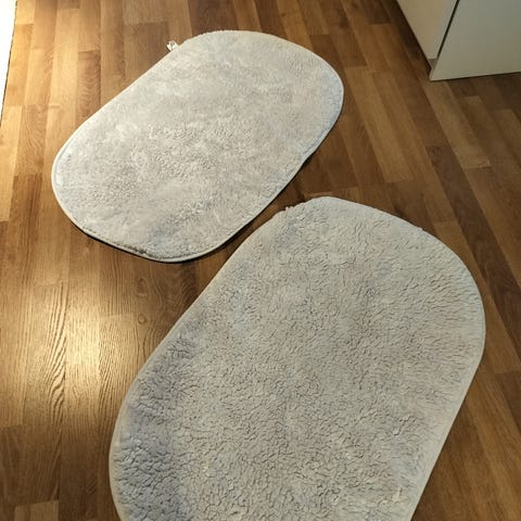 Varaston tyhjennys. Ehjiä siistejä imuroimattomia kylpyhuoneen mattoja yht. 4 kpl. Mitat kuvissa. Kaikki 10 e.