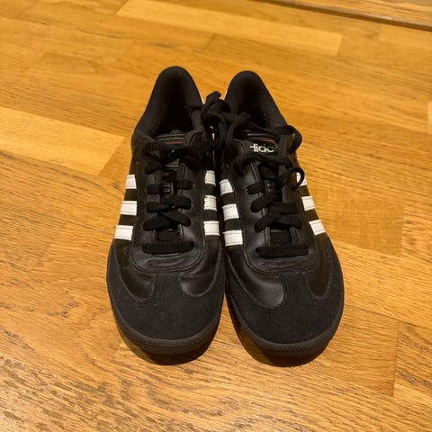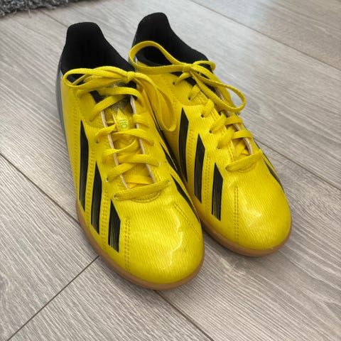 Adidas futsal- / sisäpelikengät, koko 38. Ehjät ja hyvässä kunnossa. Kenkien pohjissa hieman tummentumaa, kenkiä ei ole pesty.