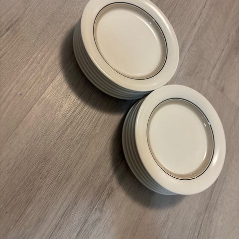 4 kpl Seita-sarjan syviä lautasia (halkaisija 20 cm) ja 4 kpl Seita-sarjan matalia lautasia (halkaisija 24 cm). 4 kpl kahvikuppeja ja lautasia (Arctica-sarja). Seitasarjan tarjoiluvati (30,5 cm x 10 cm) ja kannellinen kulho (korkeus 5,5 cm ja halkaisija 13 cm). Soveltuu kahvi- ja ruokailukäyttöön.