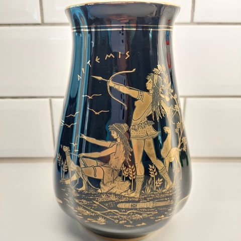 Myydään kuvien mukaisessa kunnossa oleva ST Käsin tehty Kreikkalainen maljakko 24k Kultaus