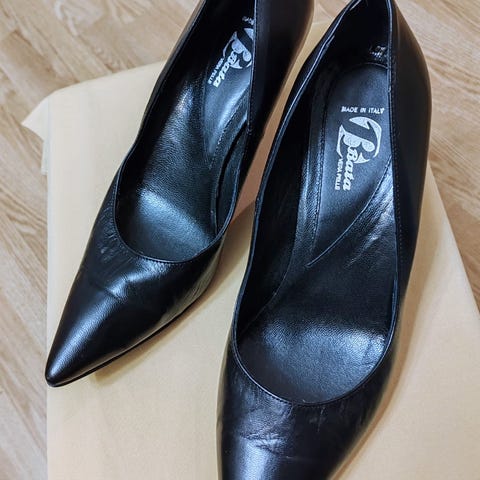 Ihana liskopainanta mustissa nahkaisissa korkkareissa.