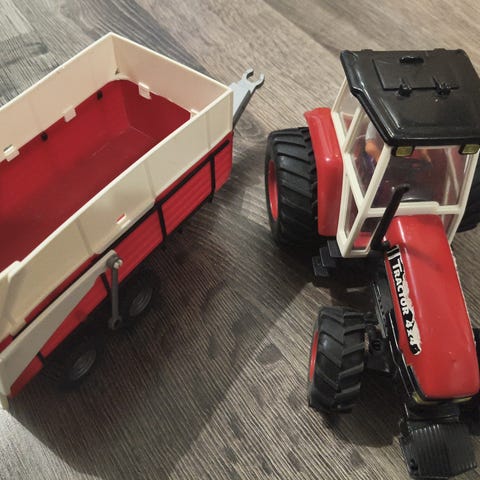 Tässä olisi myynnissä lasten lelu traktori peräkärryllä yhteensä maksaa 10€. Vain nouto ja maksu MobilePayssa.