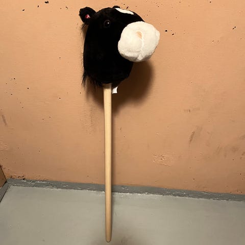 Myydään valkoinen keppihevonen yksisarvinen. Kepissä pyörät, mknkä ansiosta rullaa hyvin. Kyljessä tapit, mistä helppo pitää kiinni ratsastaessa. Siistissä kunnossa.