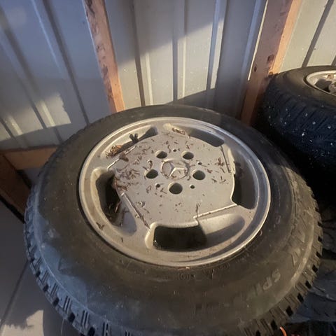 Hyväkuntoiset Hankook nastat MB:n alkuperäisillä huonokuntoisilla alumiinivanteilla. Pintaa n.6mm ja lähes kaikki nastat tallella. Paistettu 2019.
