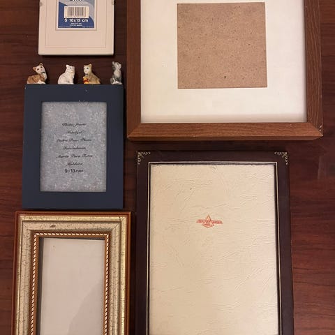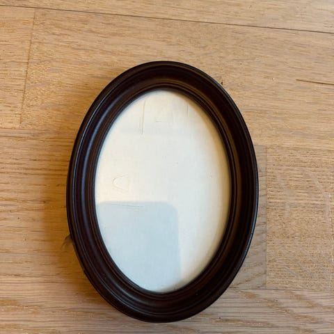 Vanha vintage kehys. Pinta kerman väristä aitoa nahkaa, taustalla kiiltävän sileä kangas. Kehyksessä lasin sijaan muovikalvo. Pientä ajan patinaa pinnassa mutta ikäisekseen hyväkuntoinen. Koko 12,5x16,5cm.