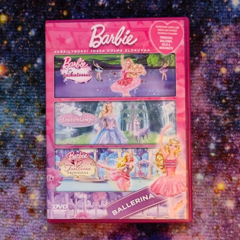 Tässä olisi myynnissä Barbie DVD leffoja, jos kaikki ostaa niin maksaa 30€ ja erikseen 6€/kpl. Vain nouto ja maksu MobilePayssa.