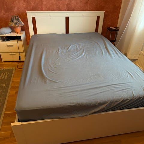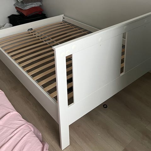 Ikean Songesand sängynrunko 90×200cm patjalle. Mitat näkyy kuvassa 2. Hyvässä kunnossa, hinta uutena 199€. Halutessaan saa mukaan patjan (+20€). Nouto Vantaan Mikkolasta. Sänky on valmiiksi purettu osiin.