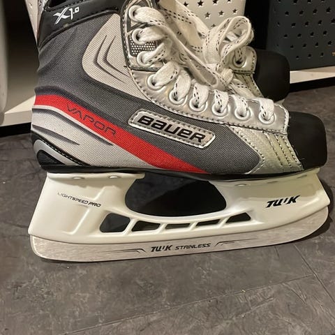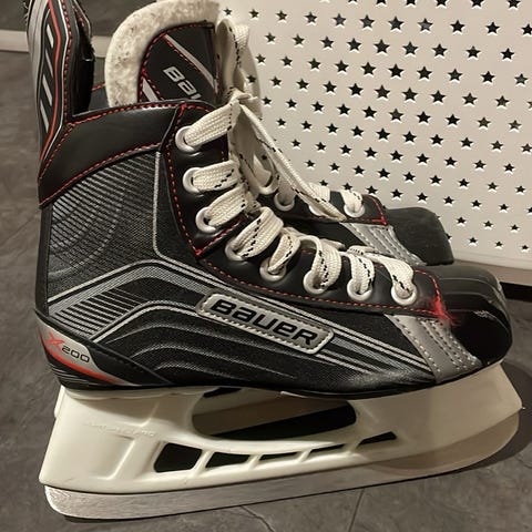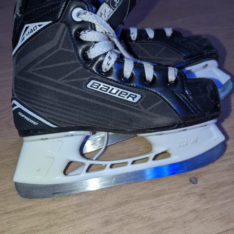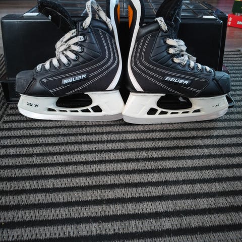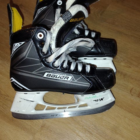 Käyttökuntoiset luistimet kokoa 1. Bauerin kokotaulukon mukaan vastaa kokoa 33,5. Sisämitta 21 cm. Mukaan pinkit teräsuojat.