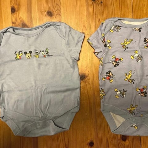 Myydään muutamia kertoja käytettyjä vauvan bodeja. Vaatteessa lukee koko 0-3m/ 62cm, mutta mielestäni koko vastaa enemmän kokoa 56cm. Vaaleanvihreä ja vaaleansininen. Disney baby at primark merkkisiä.
