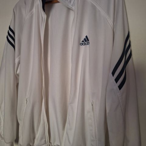Myydään hyväkuntoinen ja vähän käytetty sininen Adidas verryttelytakki miesten koossa L. Vetoketjun vieressä (toinen kuva) noin 3x3 mm pesussa syntynyt reikä, huomioitu hinnassa.