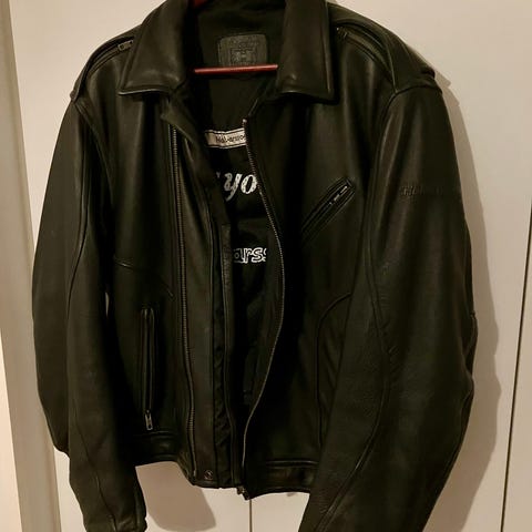Todella hyvässä kunnossa oleva Halvarssons nahkatakki. Paksu, joten menee hyvin joko ajotakki ajotakkina tai vapaa-ajalla. Koko 54, mutta mielestäni aika väljä.