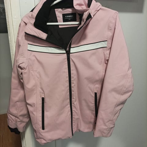 Everest lasten takki, koko 158, vaaleanpunainen väri. Takissa on vetoketjullinen etuosa ja huppu, hupun karvaosa kadoksissa, aikakin vielä😅