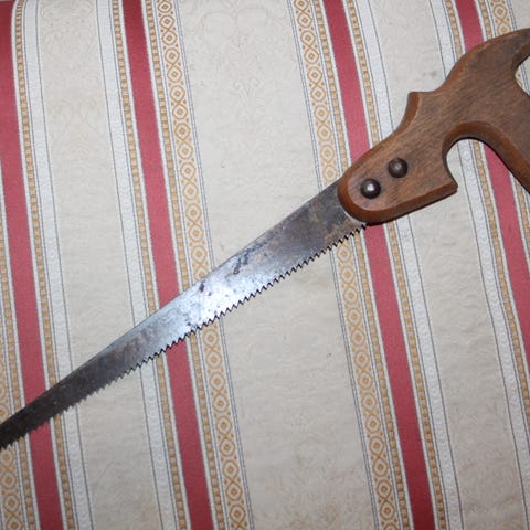 Myydään vanha puukahvainen teurastussaha / metsästäjän saha ilmeisesti 60-luvulta. Valmistettu Saksassa, valmistaja Dreizack Germany. Sahan terä on ruostumatonta terästä. Painava ja noin 67cm pitkä saha leikkasi ihan hyvin myös puuta kun kokeilin. Tästä hieno ja iäkäs saha keräilijälle! vintage retro metallinen työkalu työ kalu työkaluja kaluja puusaha antiikkinen käsisahoja sahoja disston phila työkalu käsi selkä puu rosvo pisto leikkuu pitkä teurastus luu paloittelija pilkkomis 60-luvun metsästäjä metsästys palottelu