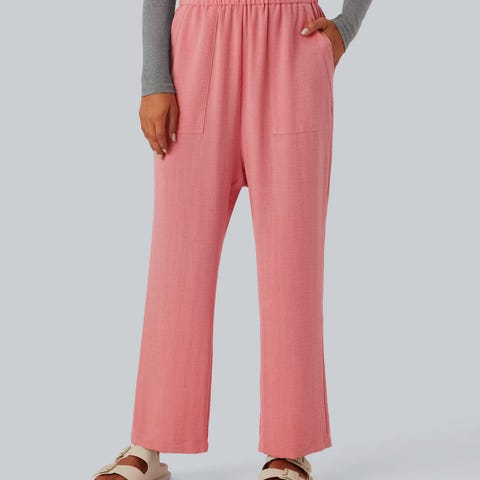 Uudet housut Halara housut. Housujen nimi Ribbed High Waisted Tummy Control Drawstring Wide Leg Color Block Casual Pants with Pockets
