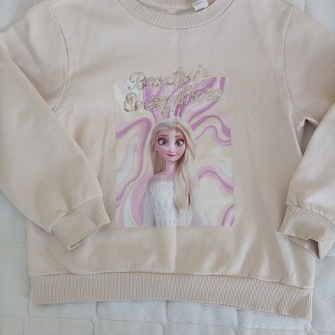 Myydään hyväkuntoinen Frozen paita, koko 122/128, helmassa tylliä, kuva ehyt.