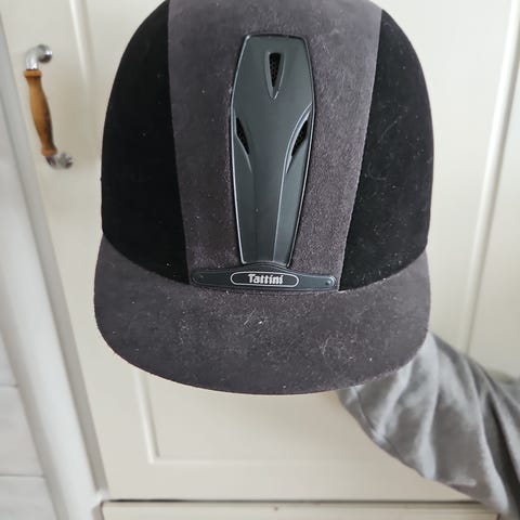 Kuin uusi, siisti Tattini ratsastuskypärä kokoa 55 (6 3/4). Musta. Suojapussi ja Eurohunterin ratsastusrukkaset matkaan.