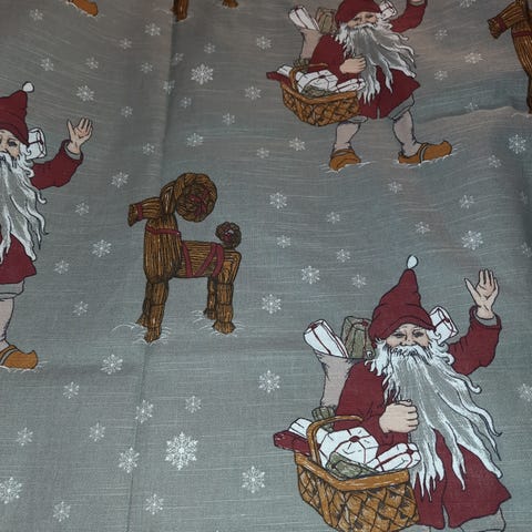 Punaiset pitkät jouluverhot, jossa tonttuja, joulukuusi ym väreinä harmaa, vihreä ja valkoinen ja musta sekä hieman keltaista ja vaaleapunaista. Vaatii silitystä, materiaali 100% puuvillaa. Mitat noin mittoja. Kiinnitys; tankokuja. Hinta 15e/pari.