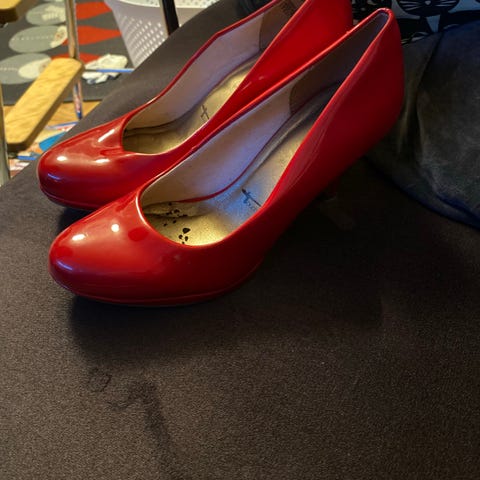 Nuden väriset, kiiltäväpintaiset korkokengät. Käytetty sisätiloissa muutaman kerran, ovat kuin uudet.