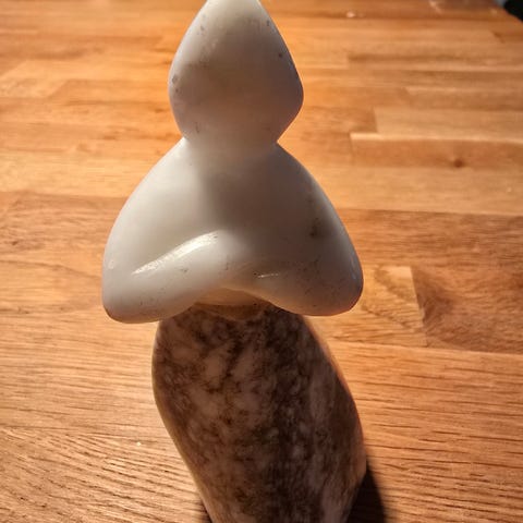 Koristepääveistos mustalla pinnalla, noin 19 cm korkea. Veistos esittää naishahmoa, jolla on korvarengas. Materiaali on kipsi. Veistos on tukevaa rakennetta. Soveltuu sisustuselementiksi. Kiinnitys seinään kuvan osoittamalla tavalla.
