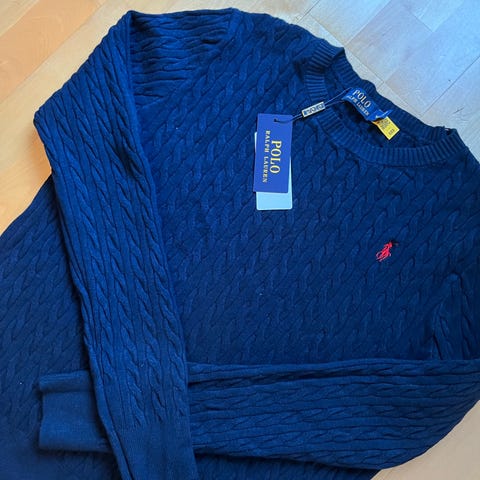 Ralph Lauren Polo Valkoinen miesten neulepusero, koko S. Neulepusero on valmistettu laadukkaasta materiaalista ja siinä on klassinen palmikkokuviointi. Sopii erilaisiin arkisiin ja juhlavampiin tilaisuuksiin.