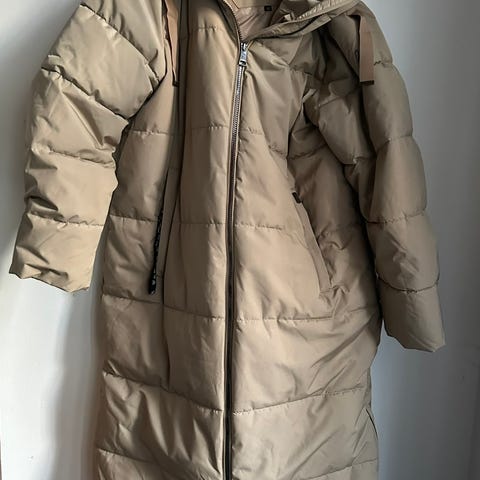 Uusi Luhta pitkä toppatakki, koko 38. Tosi lämmin,huppu, vahvat vetoketjut. Kainalo-kainalo 50, hartia-helma 96.