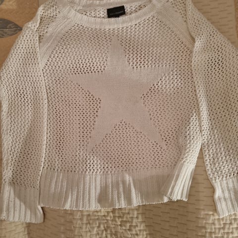 H&M Valkoinen lasten neulepaita, kokoa 134. Paidassa on lumihiutaleaiheinen hopeinen kuvio edessä.