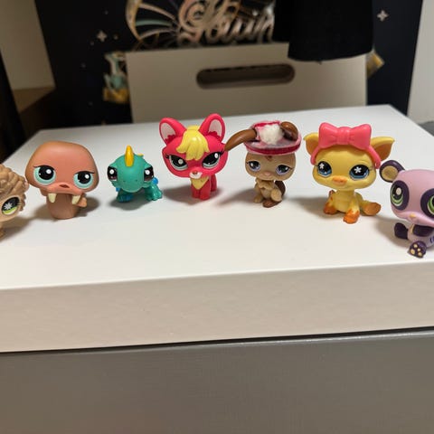 Kuvassa näkyvät Littlest Pet Shop hahmot ja tarvikkeet. Kuvan mukaiset tuotteet.