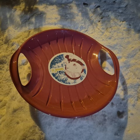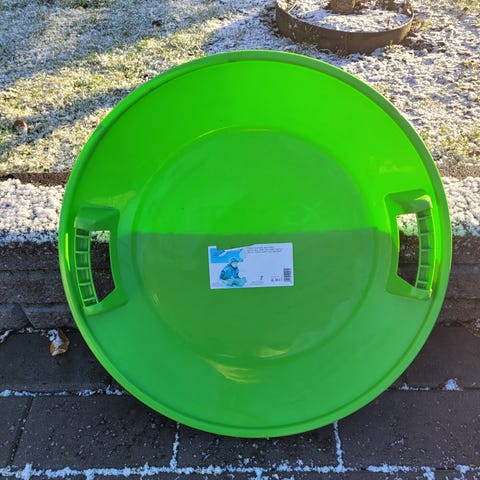 Liukuri seuraavalle laskijalle. Halkaisija 60 cm. Jonkun verran käytön jälkeä, mutta on vielä ihan kelpo mäenlaskuun.