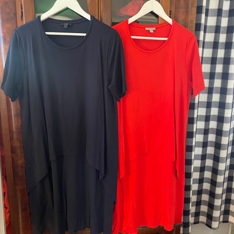 COS Muut mekot Mekko,jossa edessä leikkaus ja kerroksia. koko L, väriltään musta. Valmistettu pääasiassa viskoosista (75 %) ja polyesteristä (25 %), sisältäen myös elastaania. tasapitkä myös erilaisen vöiden kanssa pidettynä. kai-kai 54, lantio 60, mekon pituus edestä 108 ja takaa 118 cm.