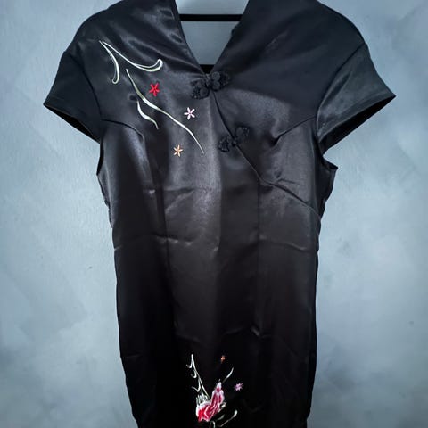 Ompelijalla teetetty Aasialaistyylinen juhla-asu kokoa xs. Kangas tuotu Vietnamista. Sivuilla halkiot vyötärölle asti. Alla kuuluu käyttää pitkiä housuja. Uudenveroinen kunto. Nouto Vihdistä tai Espoosta. Kulkeutuu Helsingin keskustaan.