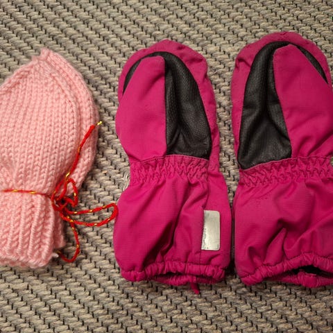 Talvitumput, talvikintaat, rukkaset. Mahtuu n 18-24 kk, harmaa väri on kokonaan heijastavaa. Muuten ehjät ja lämpimät, mutta heijastinväri paikoin kulunut.