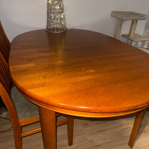 Myydään kiiltävänvalkoinen ruokapöytä 200x100 ja kuusi mustaa keinonahkaista tuolia. Pöytä ja tuolit ovat erittäin hyvässä kunnossa.