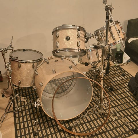 Vain kotiharjoittelukäytössä ollut upea ja laadukas setti. Setissä on nyt Aquarian Modern Vintage -sarjan medium kalvosarja ja mukaan tulee Remon Pin-Stripe öljykalvosarja raskaampaa musiikkia varten. DW 2000 sarjan bassaripedaali ja Gibraltar haitsuteline. Kuvan pro-luokan pellit voi ostaa mukaan settiin tai niitä voi ostaa erikseen. Katso peltien myynti-ilmoitukset muista ilmoituksistani.