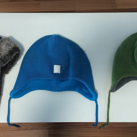Reiman pipo, jossa käytetty heijastavaa lankaa. Koko 48/50.