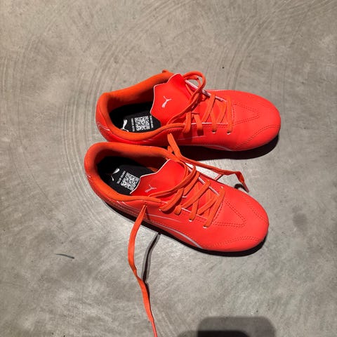 Puma Ultra 1.3 FG jalkapallokengät sinisellä ja punaisella värityksellä. Kengät on suunniteltu nurmikentille ja niissä on kiinnitysnauhat. Ulkopohjassa on useita nastoja, jotka tarjoavat pitoa kentällä.