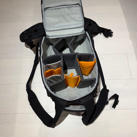Lowepro kamerareppu musta väri, varustettu säädettävillä ja pehmustetuilla lokeroilla kameran ja lisävarusteiden suojaamiseen. Reppu on valmistettu kestävästä materiaalista ja siinä on useita taskuja järjestelyä varten. Sopii valokuvaajille, jotka tarvitsevat turvallisen ja järjestelmällisen tavan kuljettaa kameravarusteitaan.