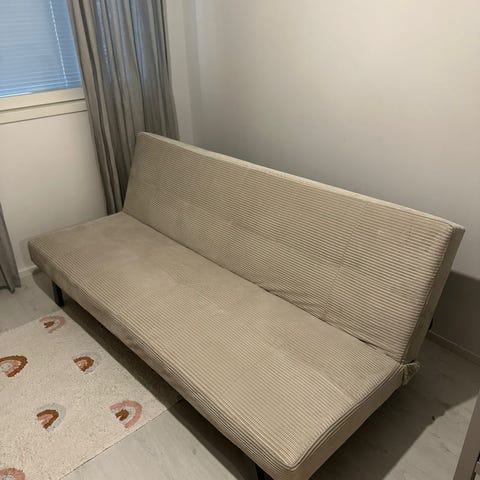 Istuinmateriaali on teddy-kankaasta valmistettu, ja vuodesohva on todella helppo taittaa sängyksi ja takaisin.