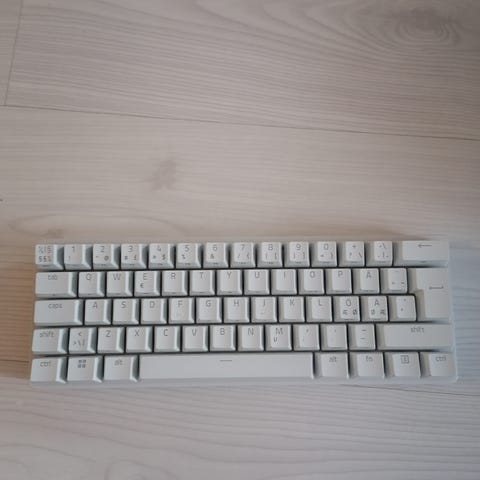 60% Razerin näppäimistö ANALOGISILLA razerin mustilla kytkimillä (ei klikkiä), musta kangaspunos kaapeli, äänieristetty pohjalevy.