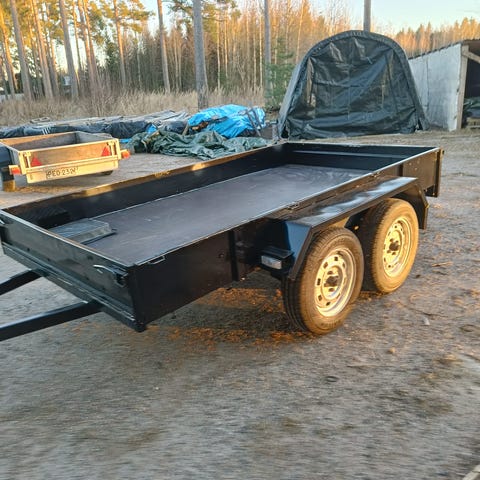Hyväkuntoinen telikärry. Jarrut avasin ja herkistelin juuri mutta en viitsi katsastaa kun ei itsellä ole käyttöä. Hyvin se silti perässä kulki. Yksi rengas vaihdettu uuteen, koska vetäessä kotiin siitä oli jarru jumissa (siksi kaikki jarrut avattu ja putsattu).