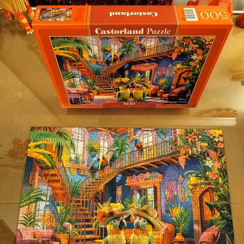 Castorland Chocolate Treats 500 palan palapeli, jossa on suklaateema. Palapeli sisältää 500 palaa, kuva-aiheena erilaisia suklaaherkkuja ja pähkinöitä. Kaikki palat ja erinomainen kunto.