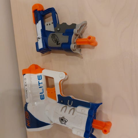 Käytetty, hyväkuntoinen ja toimiva Nerf pyssy.
