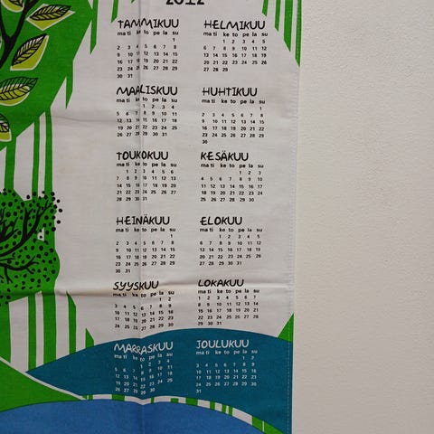 Kalenteripyyheliina 1976 napakkaa puuvillaa siisti taitaa olla käyttämätön
