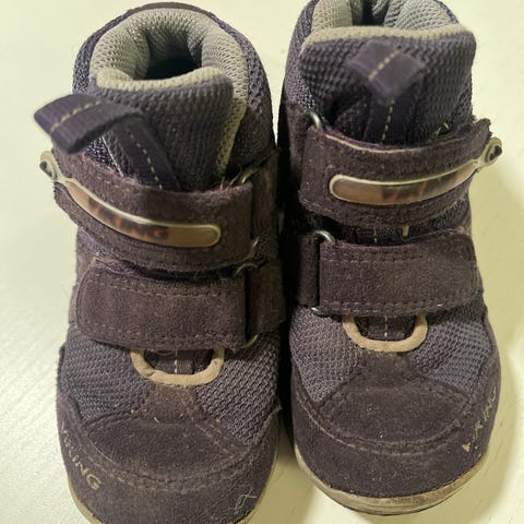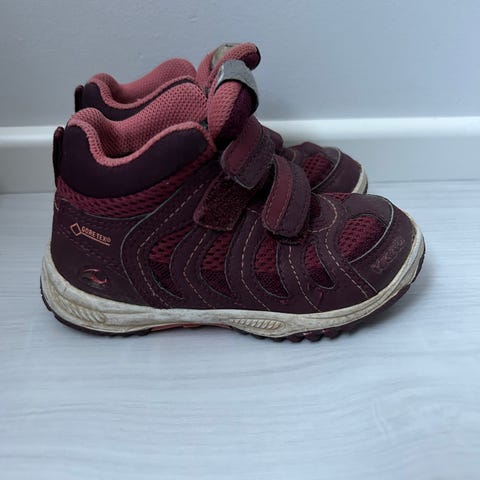 Siistissä kunnossa olevat koon 24 goretex kengät. Kärjet ehjät ja tarrat toimii moitteettomasti. Pohjissa kantapään kohdalla kulumaa.