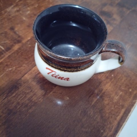 Myydään ruskea savi keraaminen kahvikuppi. Retroa. Haku Porista tai postitus ostajalle.