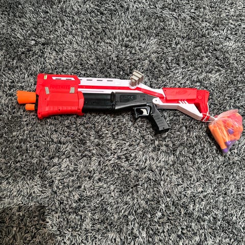 Nerf Fortnite lasten leikkipyssy, valmistettu keltaisesta ja oranssista muovista. Sopii lapsille ja on suunniteltu Fortnite-pelisarjan teemaan. Kevyt ja helppokäyttöinen lelu. Keskikokoinen Nerf pyssy, hyväkuntoinen, käytetty, toimiva.