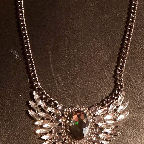 Vintage strassi- kaulakoru. Opaalinhohtoisia sinisiä kiviä. Pituus 43-44 cm.