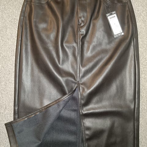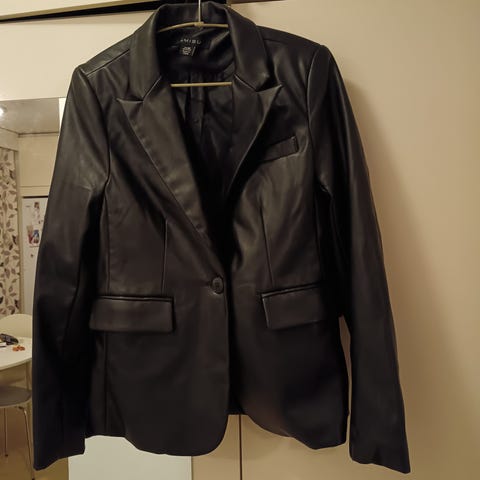 Vanha, mutta täysin käyttämätön tekonahkainen jakkupuku.