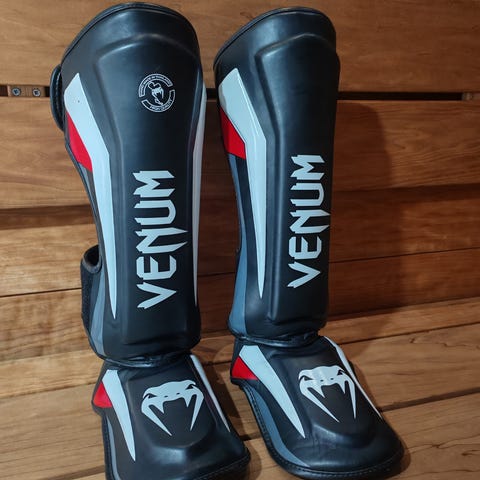 Venum keinonahka säärisuojat tummansinisenä. Suojat on valmistettu kestävästä materiaalista ja ne kiinnittyvät tarrakiinnityksellä. Sopivat kamppailulaji harjoitteluun ja esim. aloittelijalle Suojaavat säärtä ja jalkapöytää.
