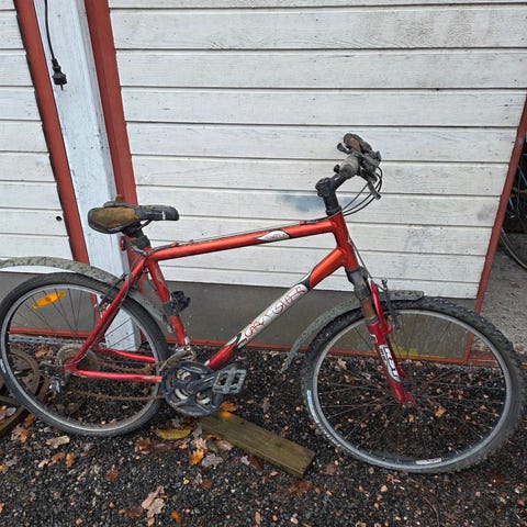 Projektikuntoinen Zasada Maxim maastopyörä ysärin loppupuolelta. Erikoinen wishbone runko. 42 x 54 c-c